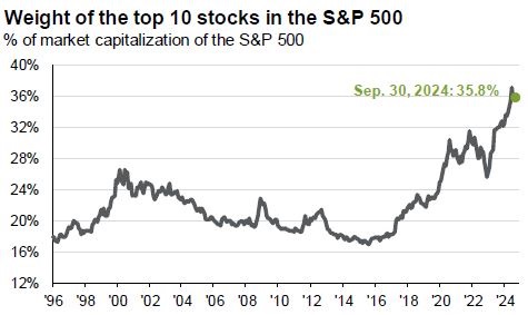 While passive investing has many attributes including simplicity and low cost, there is very little if any risk management in a truly passive strategy. Since most indexes give more weight to the biggest companies in the index, they can become significantly concentrated in only a small number of holdings. In bull markets this may be a feature rather than a disadvantage. Passive index investors will inherently end up with a higher concentration in the top performing stocks. But this feature can become a problem if the most highly concentrated businesses reach bubble valuations. All bubbles eventually pop, and index investors would be left holding the bag.