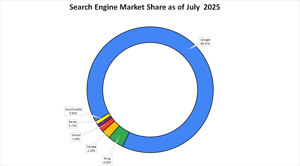 As of July, of this year, Google Search’s worldwide market share was 89.57%.