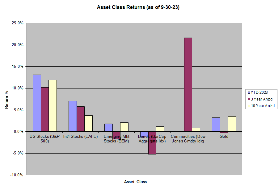 We have updated our asset class return chart to reflect year-to-date 2023 along with three- and ten-year annualized returns for the aforementioned asset classes.