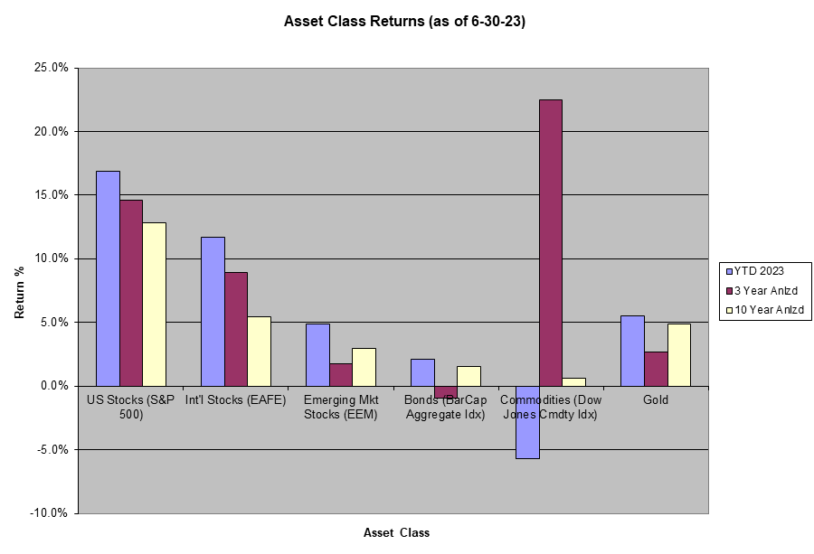 We have updated our asset class return chart to reflect year-to-date returns through June, along with three and ten year annualized returns for the aforementioned asset classes.